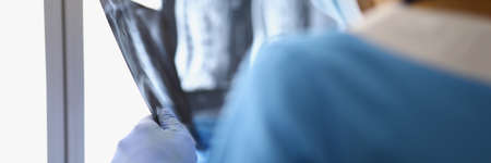 Close-up of doctor hands holding x-ray image. Medical and healthcare concept.