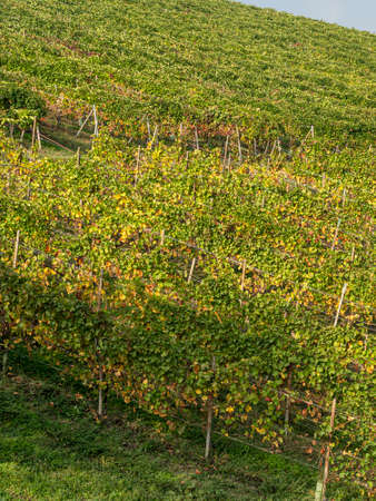 Rows Of Vineyard Grape Vines. Autumn Landscape. Austria south Styria . Abstract Background