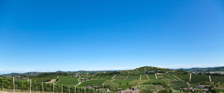 Vineyards in the Langhe near Barolo and Alba, Cuneo, Piedmont, Italy, at summer