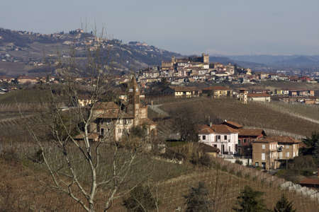 View of La Morra in the Province of Cuneo, Piedmont, Italy.