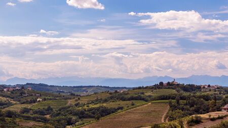 Summer landscape in Langhe (Piedmont, Italy), with vineyards