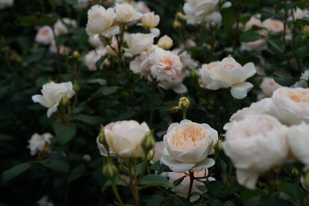 Gentle blush: A cluster of blossoming roses reveals delicate color