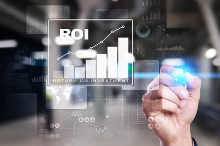 ROI, Return on investment business and technology concept. Virtual screen background.