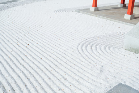 This captivating image showcases a Zen garden with intricate sand patterns and rocks, evoking calmness and tranquility for meditation and relaxation.