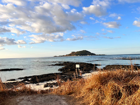 Beautiful blue sky and green and natural scenery of the sea in Kitanagato Coast Quasi-National Park