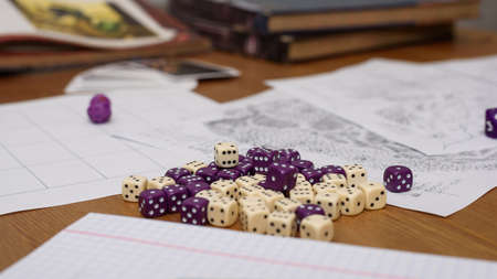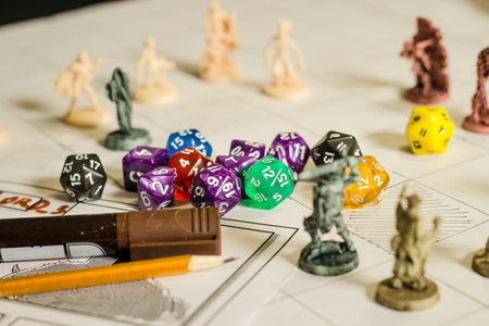 role playing game set up on table - stock photo