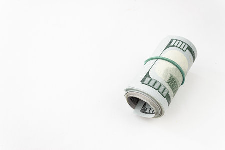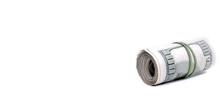 Rolled dollars on a white with copy space. American money.