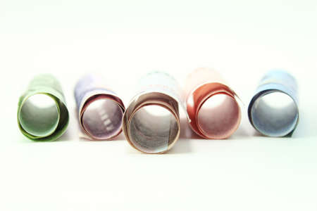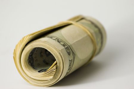 a role-dollar bills in front of white background