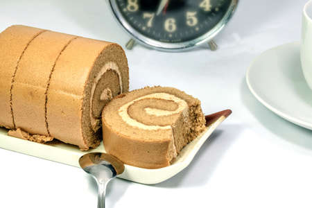 Sweet roll cake isolated on white