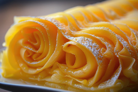 AI Generated. Delicious golden brown rolled crepes dusted with powdered sugar