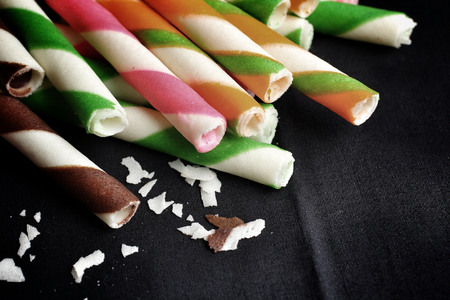 Wafer roll sticks on black background