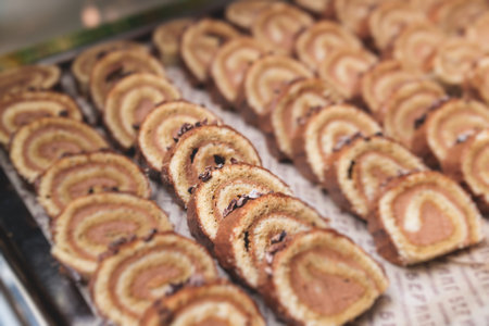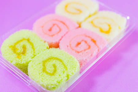 Close up Colorful slice roll cake