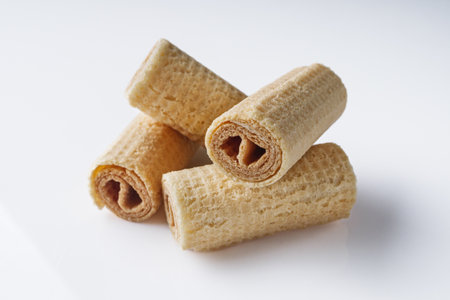 crispy dessert waffle rolls on a white background