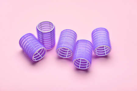 Collection of colored thread layout on a pink background. Handmade and sewing minimal concept.