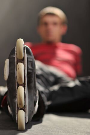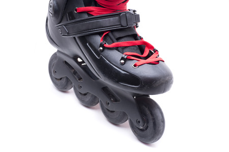Close up of inline roller skates. Extreme sport. Lifestyle activity. Concept about sport and leisure