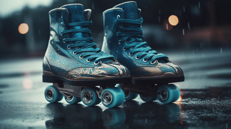 Roller skates on asphalt. Generative AI