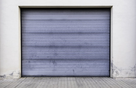 Grunge Gray Metallic Roll Up Door Background And Texture