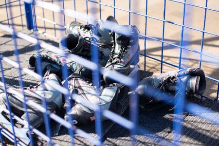 Roller skates on the road in the park. Close-up.