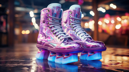 A roller skating rink with neon lights and disco vibes evokes a sense of nostalgia and oldschool charm. Concept Neon Lights, Disco Vibes, Roller Skating Rink, Nostalgia, Oldschool Charm