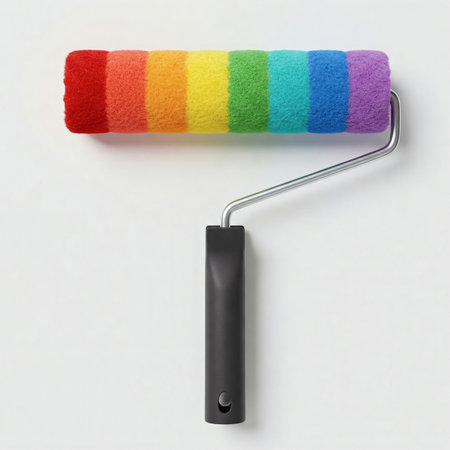 A colorful paint roller spreads a vivid spectrum of paint across a pristine surface, capturing the essence of creativity and artistic expression in vibrant tones.