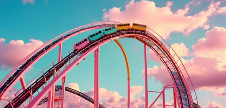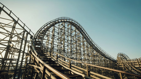 Rollercoaster at sunset with blue sky, vintage toned.generative ai