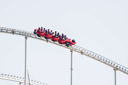 Vila-seca, Tarragona, Spain - April 9, 2019: Red force it is 880-metre route, accelerating from 180 km-h in just 5 seconds and reaching a maximum height of 112 metres