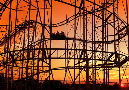 Attraction roller-coaster (switchback) against the background of a romantic evening sky