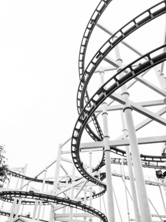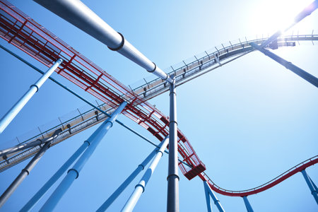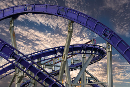 Amusement Park Fun Abstract View of Roller Coaster Against Summer Sky