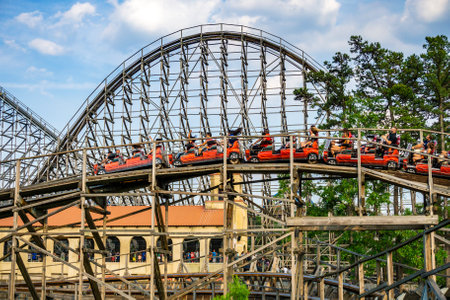 JACKSON TOWNSHIP - JUNE 2016: Guests having fun at Six Flags Great Adventure a famous amusement park. Six Flags Great Adventure is an amusement park owned and operated by Six Flags and located in Jackson, New Jersey.