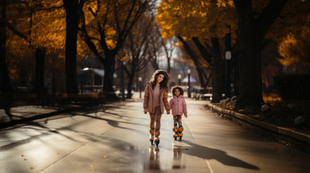 A group of friends is roller skating at a retro rink, embracing the nostalgia of 1970s roller disco. The concept of nostalgic roller skating is depicted.