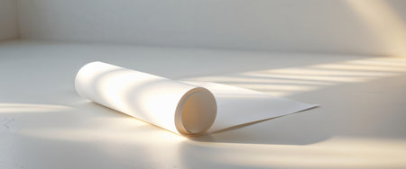 AI Generated. Rolled white paper sheet on a surface with sun shadows