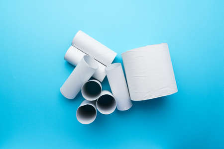 Toilet paper and core of a toilet paper roll on color background