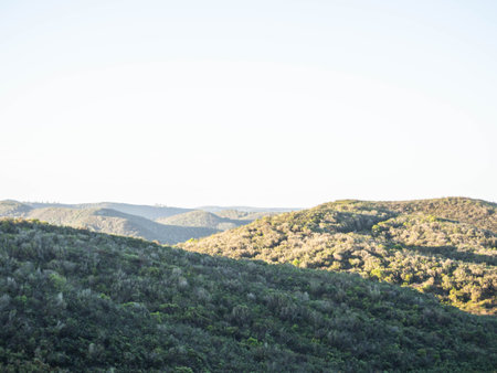 A peaceful landscape of green hills stretching into the distance. Beautiful natural landscape
