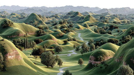 Rolling hills and gentle slopes showcase the beauty of verdant pastures in the landscape