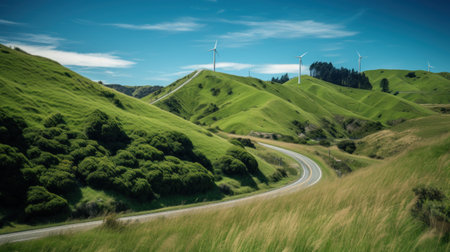 Wind turbines on the hill. green alternative energy. Generative AI