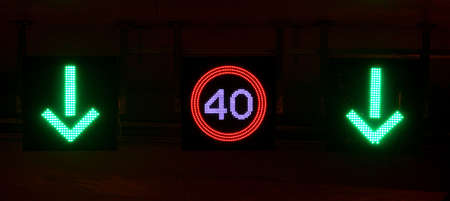 Driver's cockpit; speedometer on dashboard - colorful light in black, copy space for your design