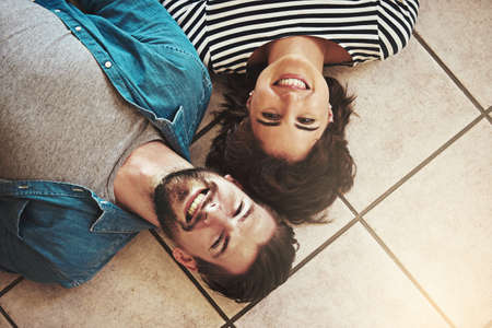 Were going to make our new home a happy one. Shot of a happy young couple relaxing on the floor of their new home.