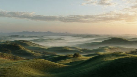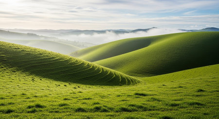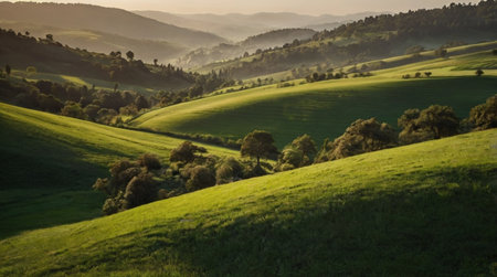 a green morning with hills and green pastures