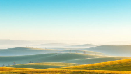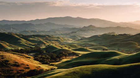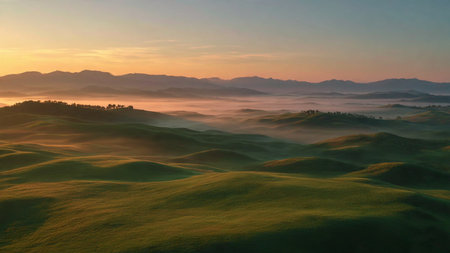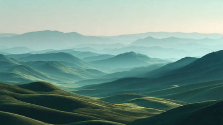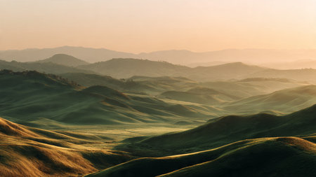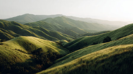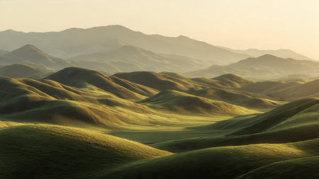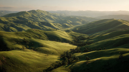 Cinematic pattern of rolling green hills viewed from above in a seamless design