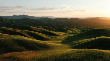 Warm sunset over grassy hills