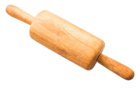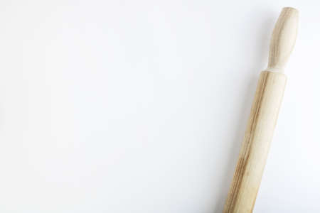 Wooden rolling pin for rolling the dough isolated on white background, with shadow. Horizontally. Copy space