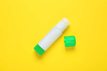 Blank glue stick and cap on yellow background