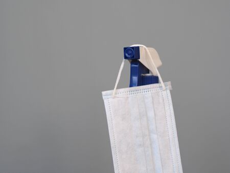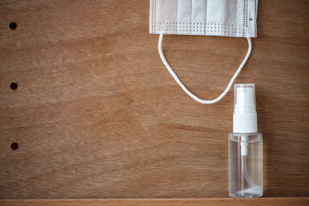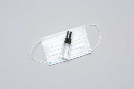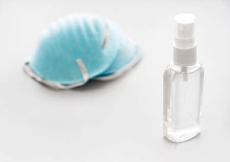 Sanitary mask with alcohol gel to wash hands Prevent coronavirus or covic-19 pathogens. White background scene