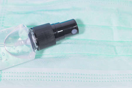 Mask n95 and a spray of alcohol for hand hygiene. Protect people from coronavirus disease covid-19