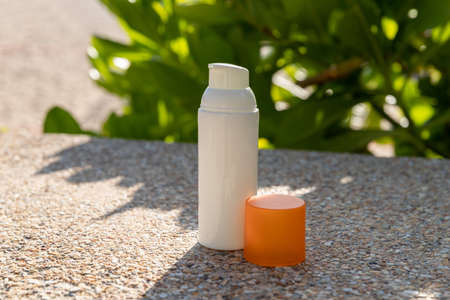 mockup tube bottle for skin care cosmetic summer sunscreen, product branding, cream lotion