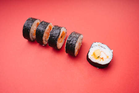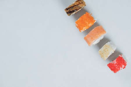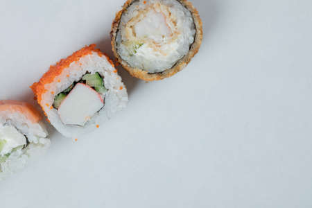 Still life. Japanese cuisine- roll in a package. Flat lay