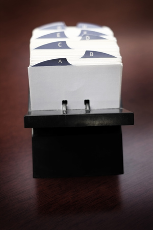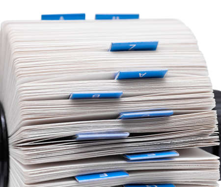 Paper catalog cards. The concept of data storage and old technologies. Vertical photo.