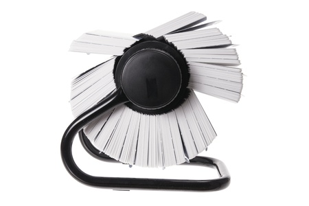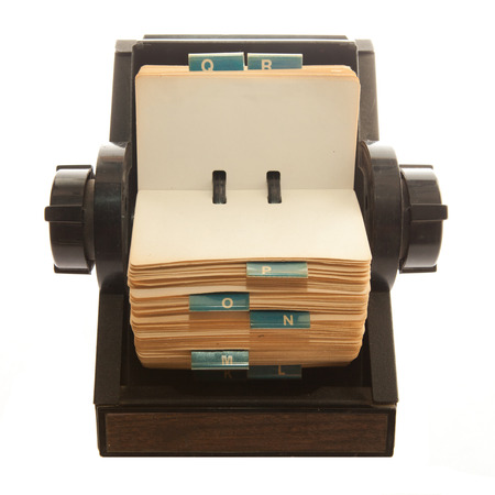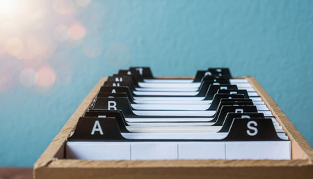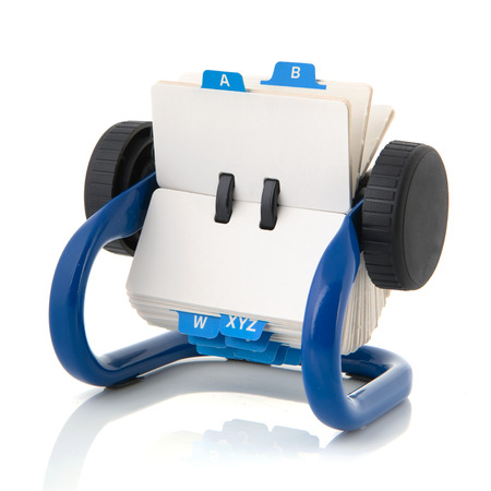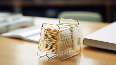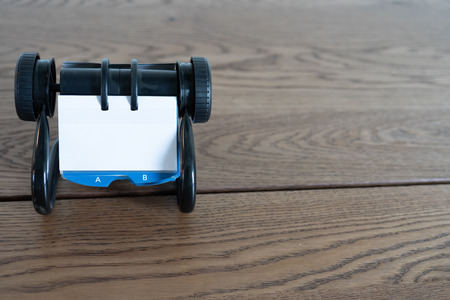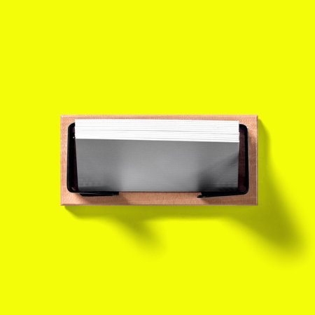 A close-up view of a card index holder containing neatly arranged blank cards. This image showcases organization and minimalistic design, ideal for office settings.