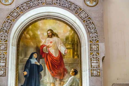 ROME, ITALY - JANUARY 2, 2019: light is enlightening painting in Santa Maria Liberatrice church in Testaccio district