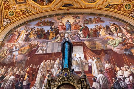 ROME, ITALY - JUNE 28, 2019: ancient frescoes and statue in vatican museums